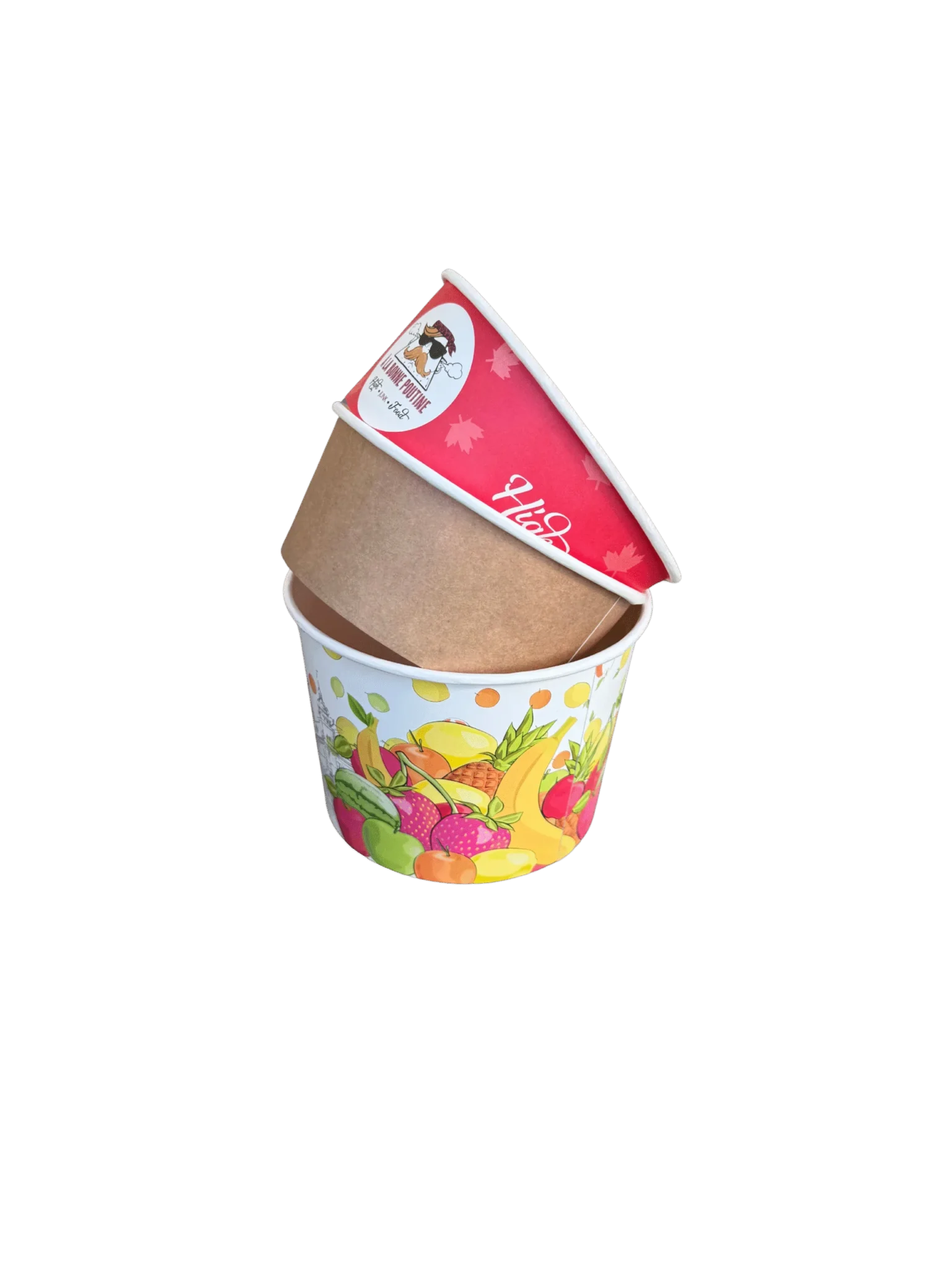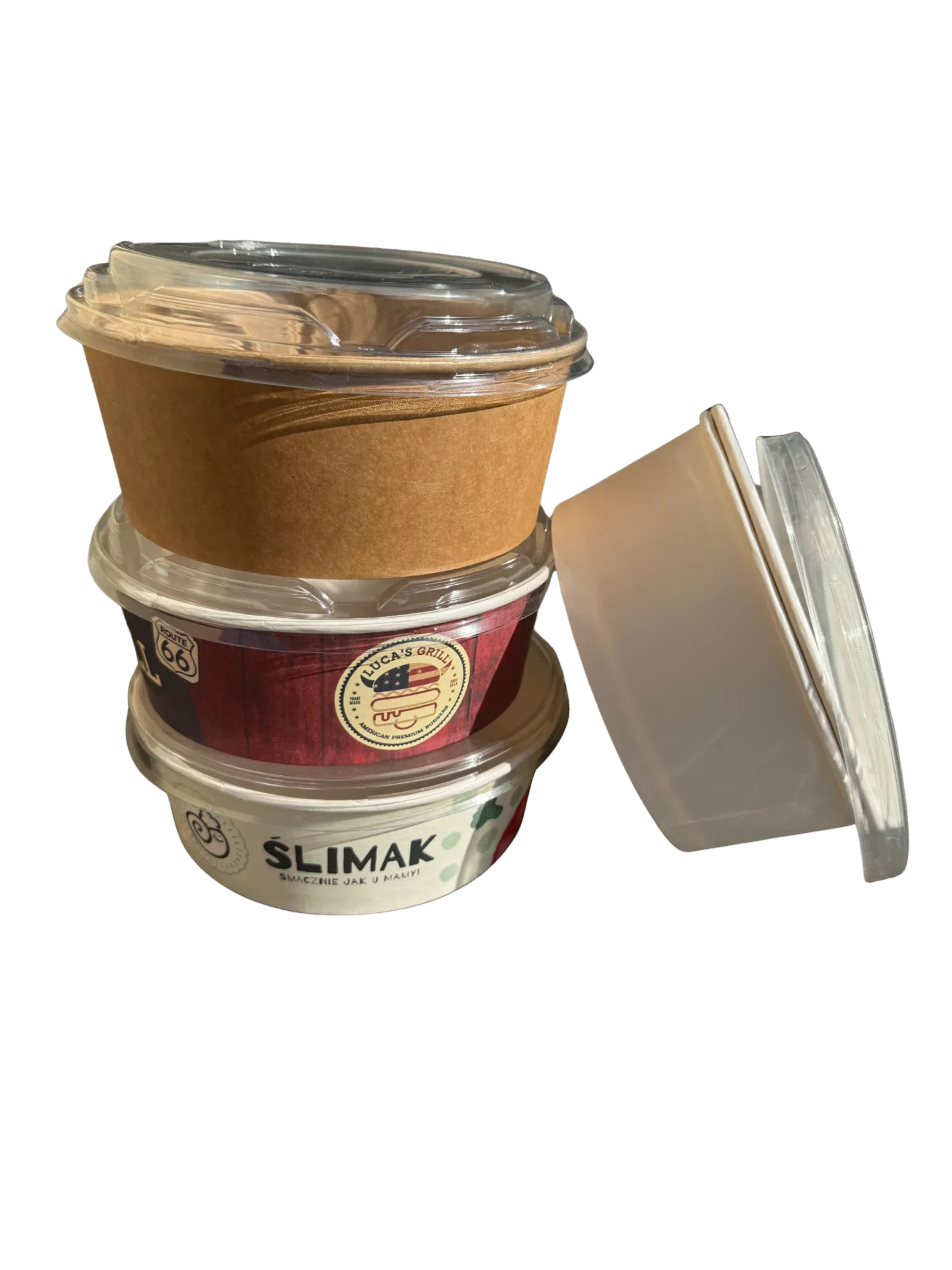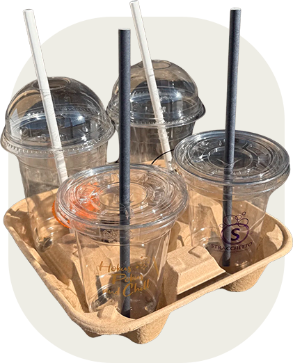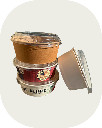 Fås i pap eller plast – med eller uden låg – og kan leveres med tryk.