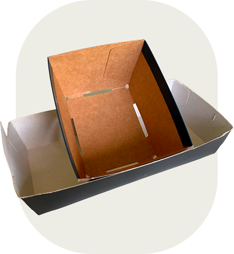 Udover kage- og bærbakker tilbyder vi et stort udvalg af kartonnage til mange formål – fra æsker til detail til specialbakker til fødevarer. Vi skræddersyr kartonnagen til dit behov.